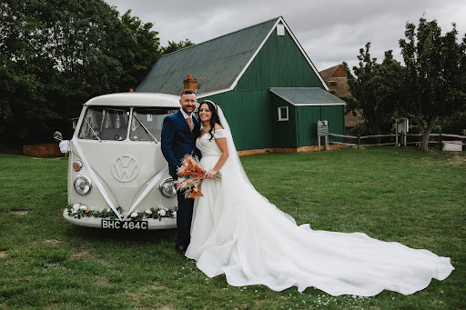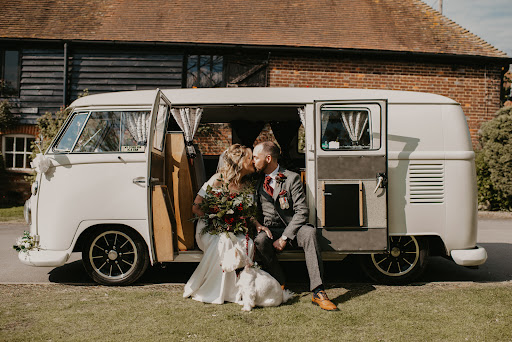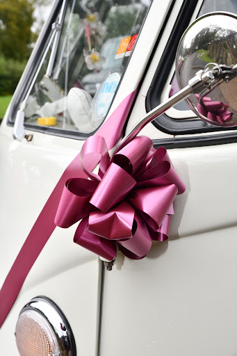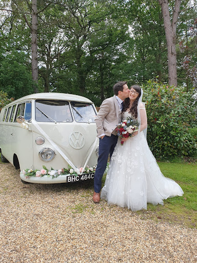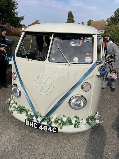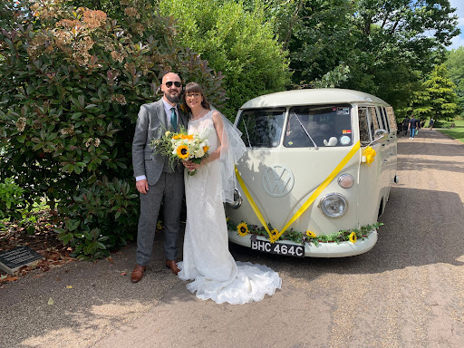 I hired beautiful and charming Georgie the 1965 split screen VW Campervan for our Bridal transport back on Saturday 12th October. What an absolute delight it was for myself and my Bride tribe to travel in. On the big day Kelly arrived in plenty of time, with no complaint about having to wait for us to finish getting ready, leading to a minor delay in us leaving for the venue. Amongst all the rush and chaos she remained calm and composed and drove us all safely to the venue in plenty of time despite there being some motorway traffic on the way. On arrival Kelly was happy to drop my Bride tribe off and have my Dad jump in so that we could go for a little drive just the two of us before the ceremony. To our amazement as well, she offered to stay around until after the ceremony so that my Husband and I could get some photographs taken with Georgie. Georgie of which was clean and maintained to a high standard, stocked well with some sweets and decorated beautifully with ribbons and flowers which matched really well with our colour scheme and rustic theme. Our guests were amused at my choice of vehicle initially but on the day could totally see the vintage charm and beauty that I saw and they too loved Georgie. We have no hesitations to use this service again in the future or recommend to others.