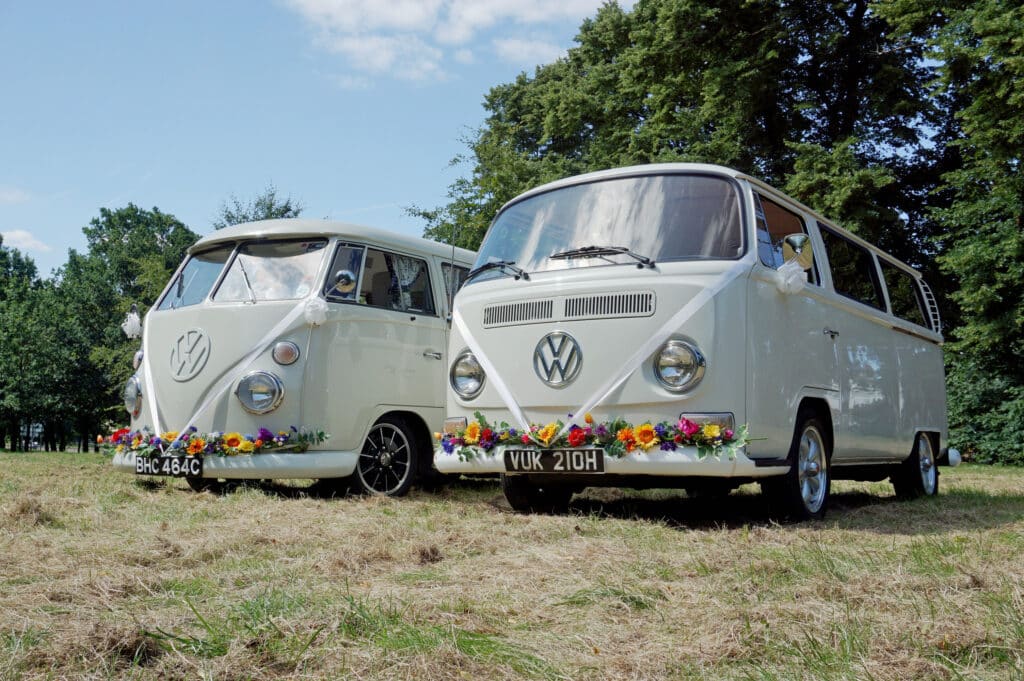 Why settle for the usual executive saloon when you can make a statement with a luxury Volkswagen camper van? We believe your wedding car should be as unique as your celebration. That’s why we work with you to ensure every detail—from the vehicle to the flower garlands and ribbons—perfectly matches your theme and colour scheme. With a range of customisation options, we’ll make sure your car is as personal and special as your big day. Because no two weddings should ever be the same!